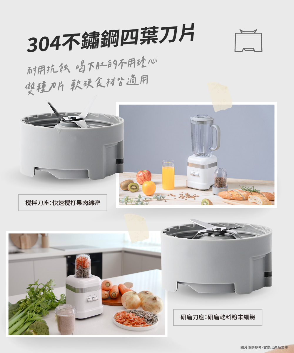 內含:主機 x1、攪拌杯組合(攪拌刀座/攪拌杯/杯蓋/量杯) x1組、研磨杯組合(研磨刀座/研磨杯/研磨杯蓋) x1組、說明書 x1