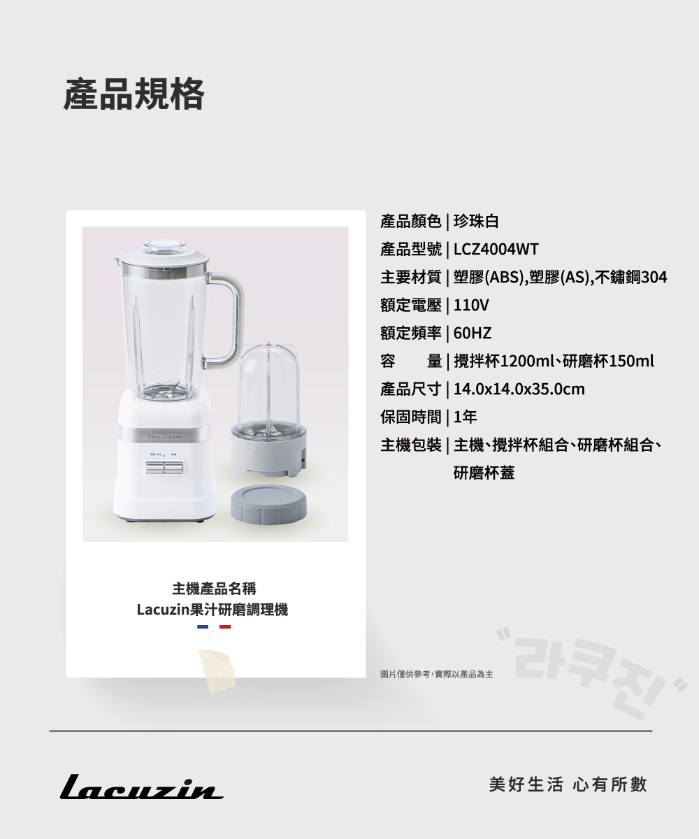 Lacuzin 果汁研磨調理機 LCZ4004WT(珍珠白) 保固一年