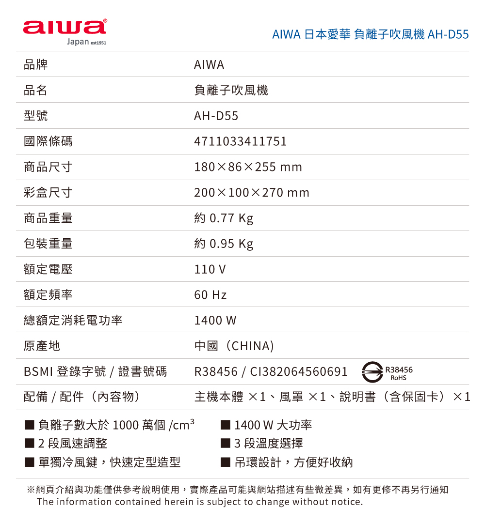 配件:主機本體X1、風罩x1、說明書(含保固卡)1