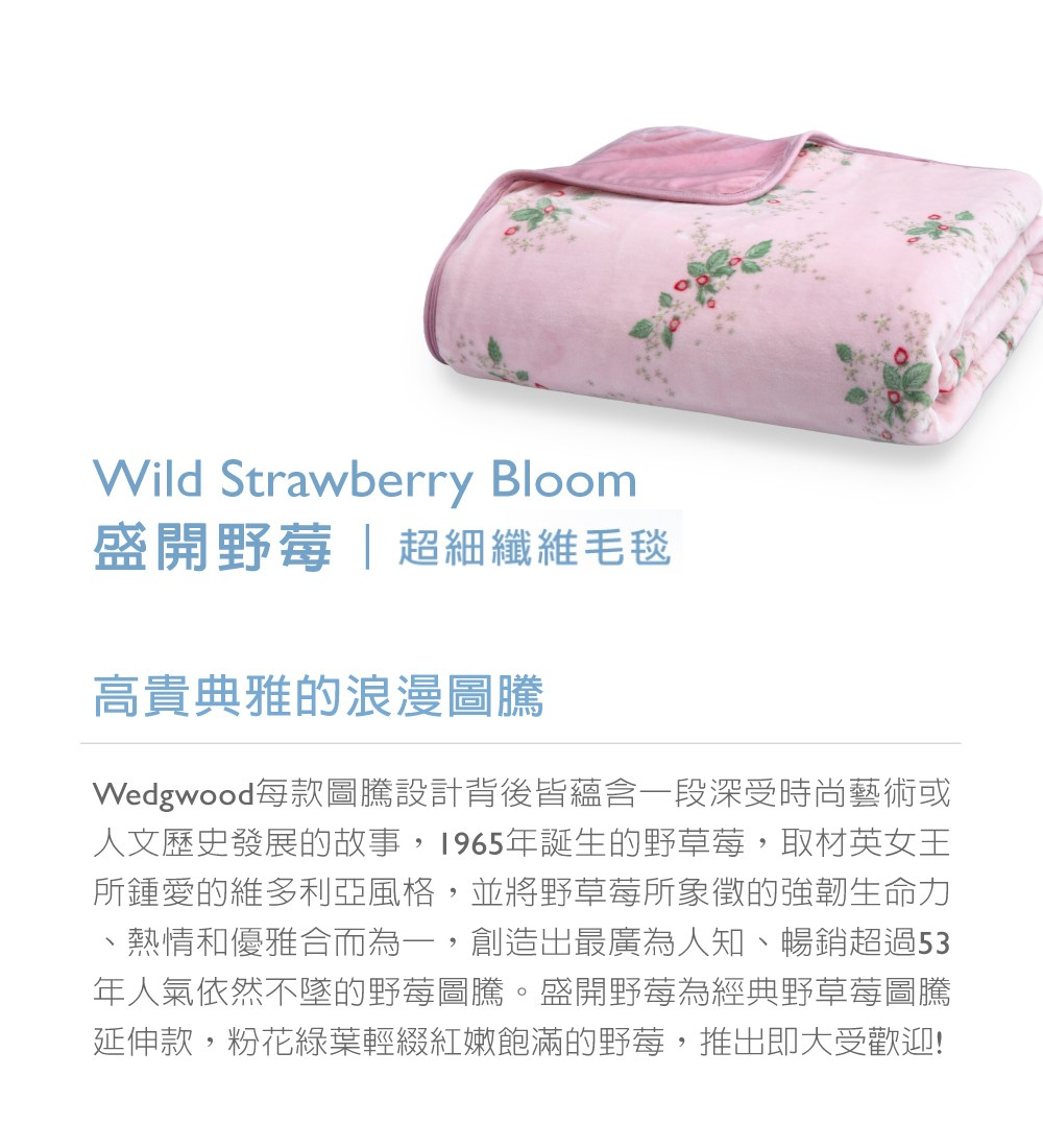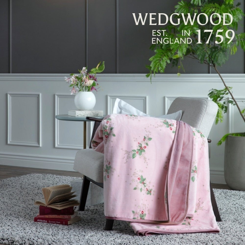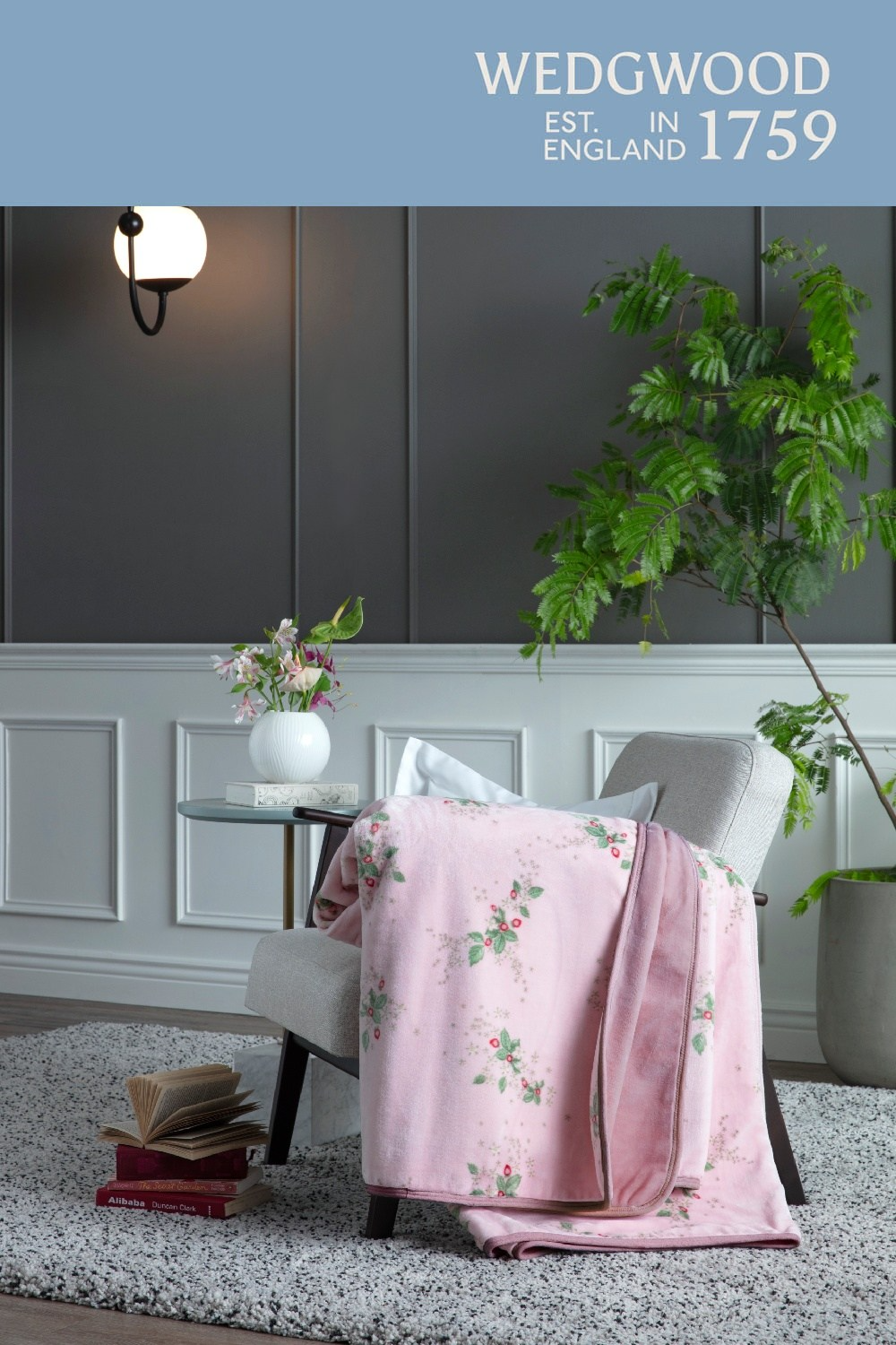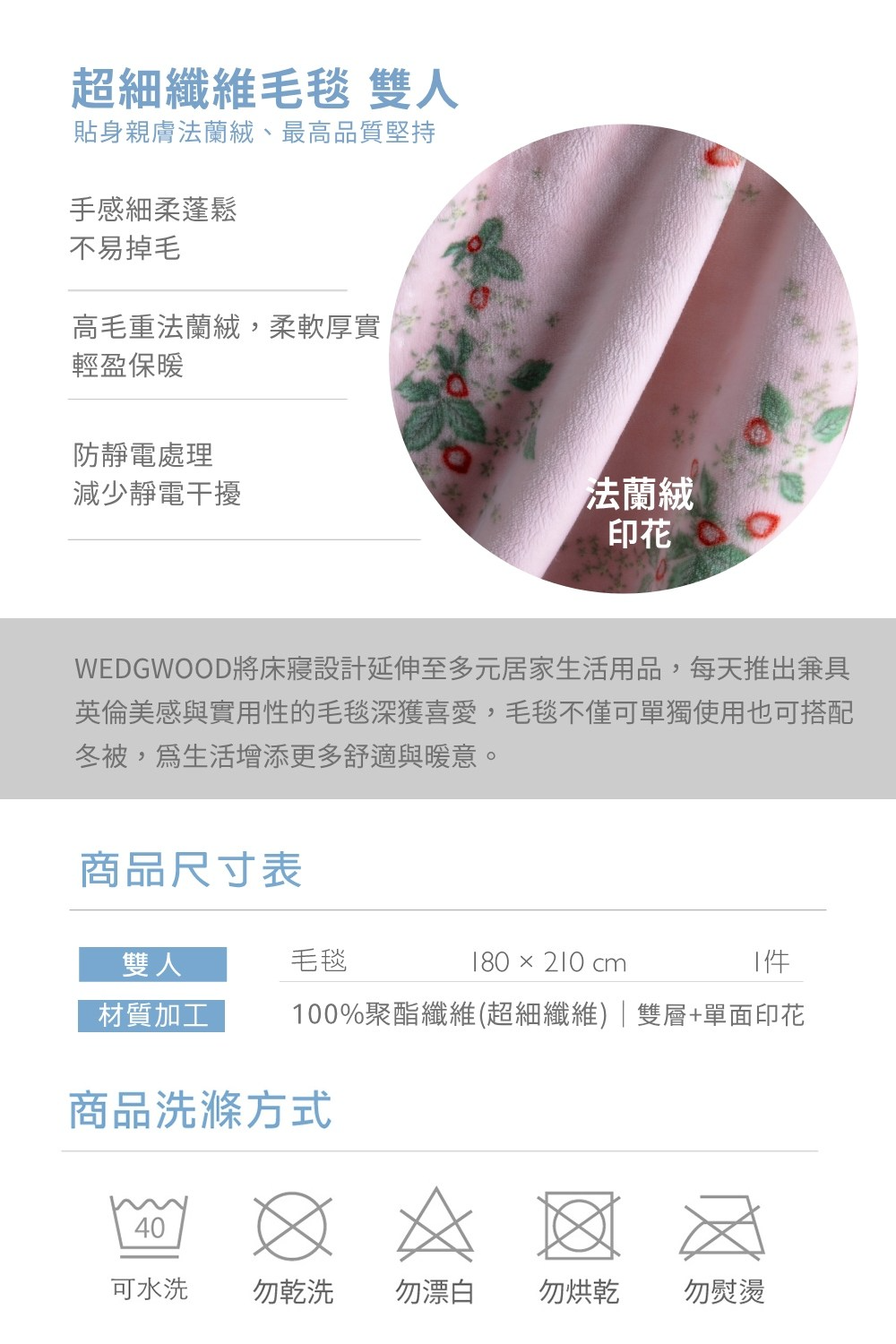 WEDGWOOD 盛開野莓超細纖維雙層單面印花毛毯 180x210cm 法蘭絨 粉色雙人毯