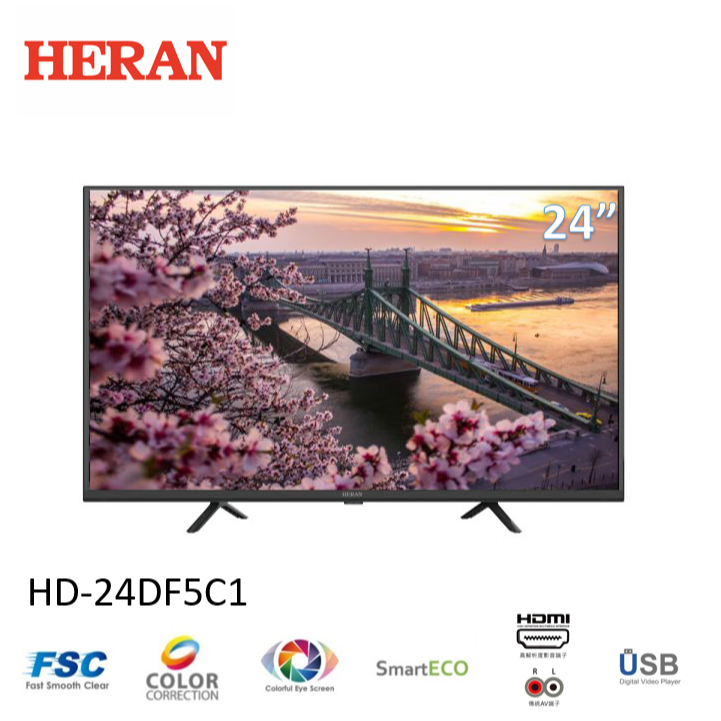 HERAN 禾聯 24吋 LED液晶顯示器 無視訊盒 HD-24DF5C1(只配送無安裝)