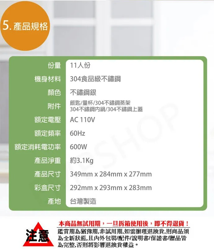 電壓/頻率:110V/60Hz