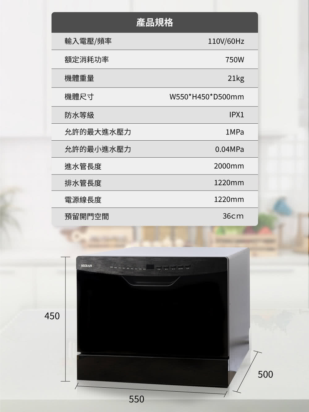 HERAN禾聯六人份熱風循環洗碗機 HDW-06BT010 可嵌入可獨立式 含基本安裝
