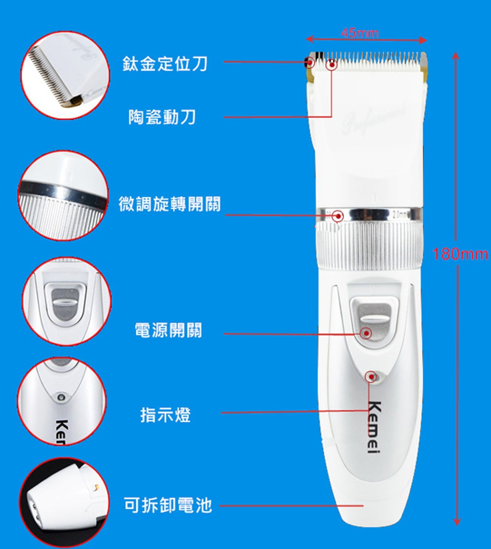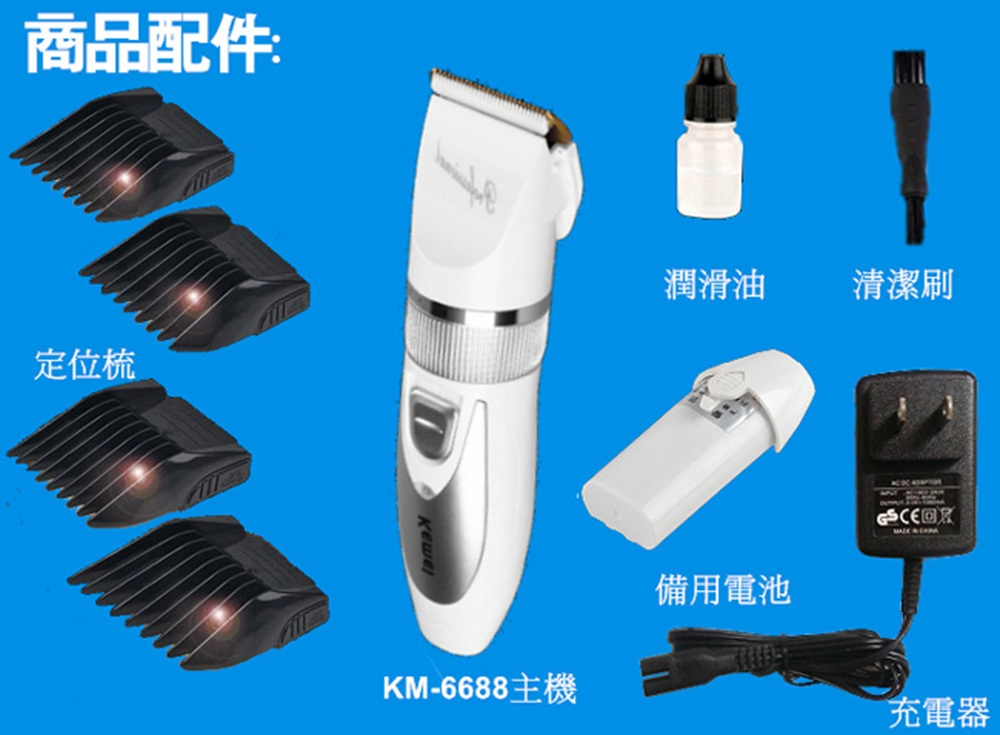 Kemei 科美 陶瓷刀頭電動理髮器 KM-6688 (國際電壓/充插兩用)