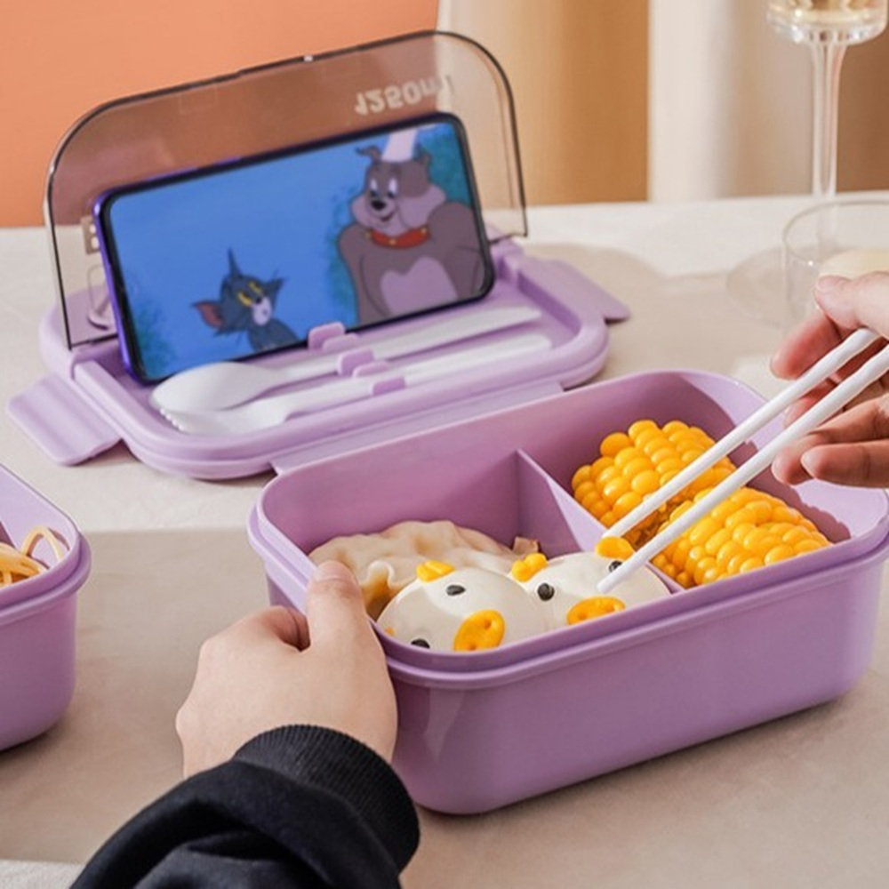 上蓋打開,不僅可以收納餐具,還可支撐手機