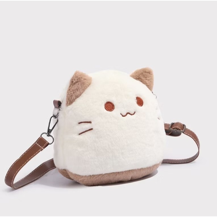 可愛 糰子 貓咪 咖啡 拿鐵 色系 絨毛 斜揹包