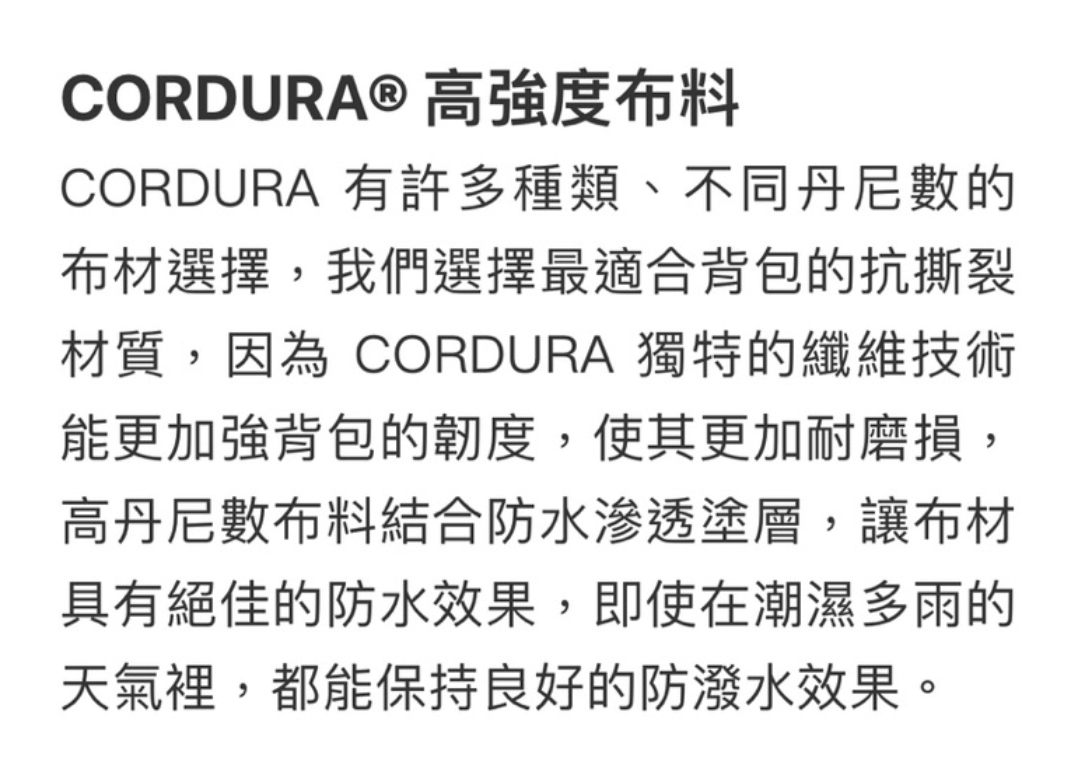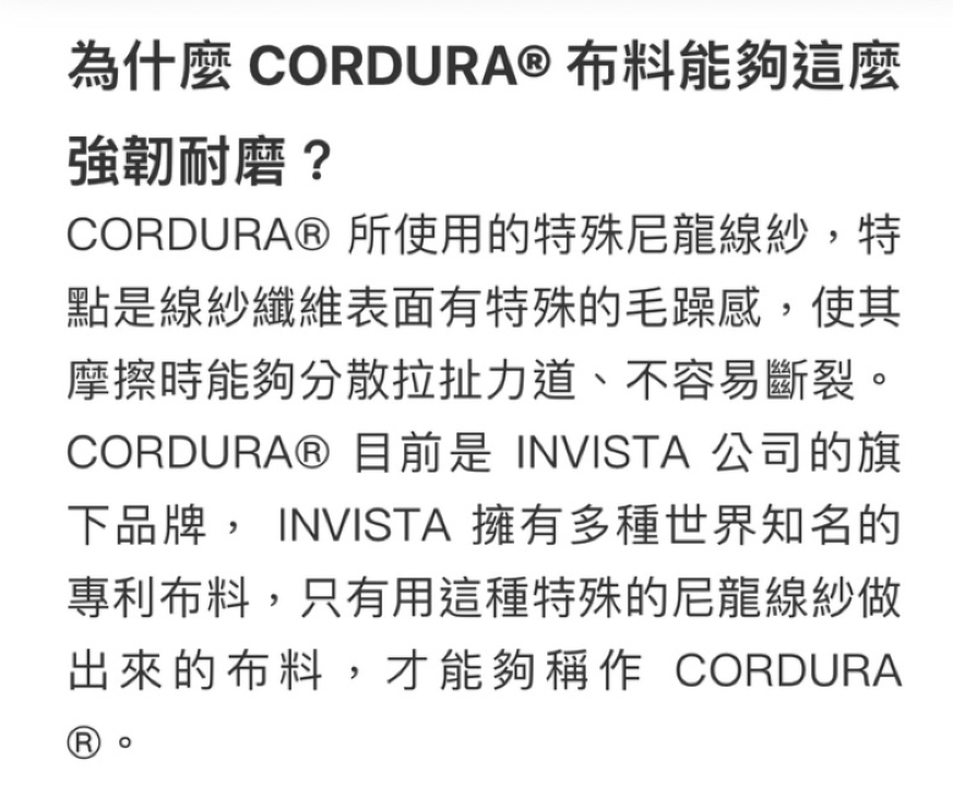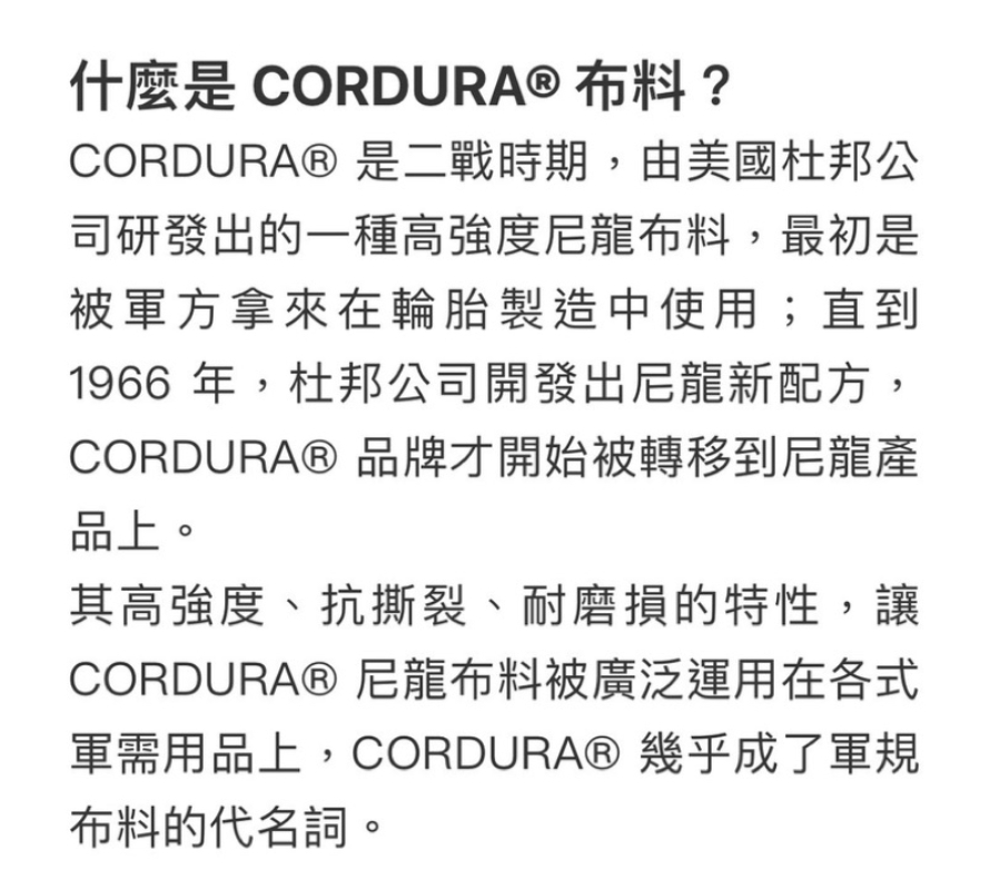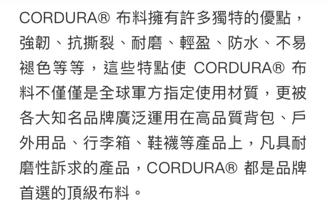 👍1000D阻燃CORDURA,經過特殊強化處理,具有防火效果,在篝火旁使用更安全和放心