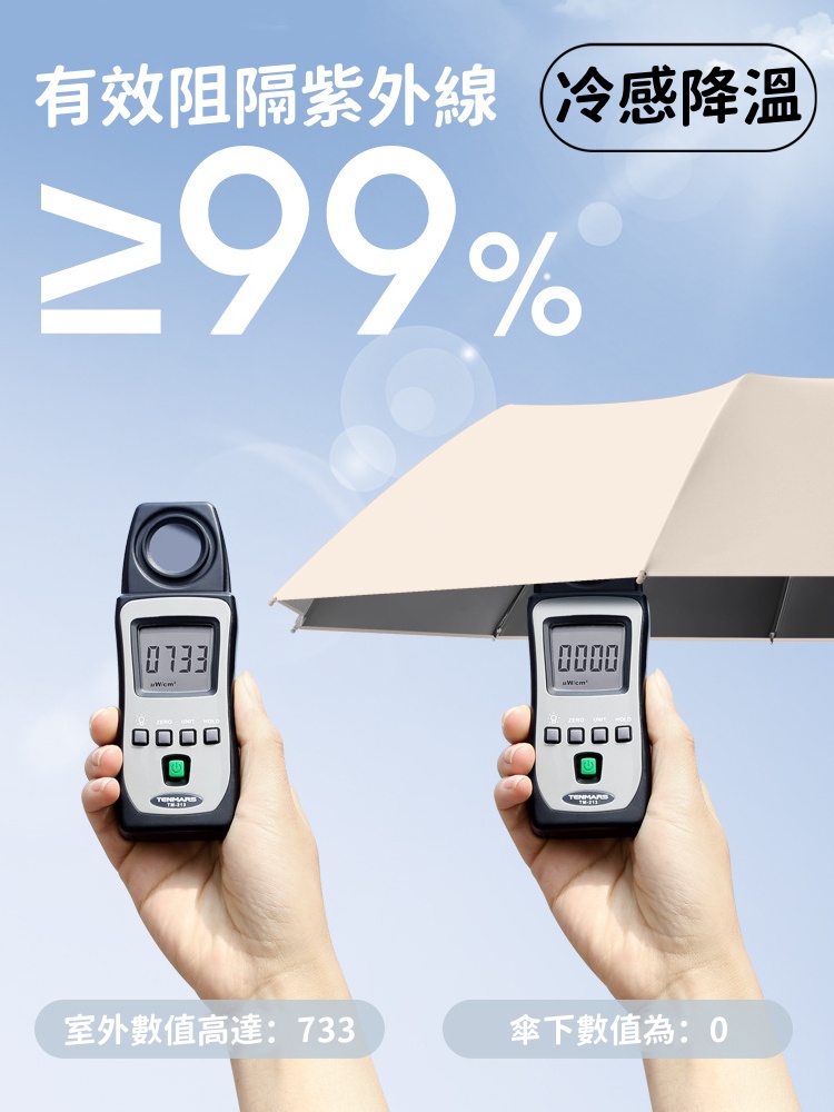 體感降溫:特殊傘布有效反射陽光 使傘下體感溫度降低數值