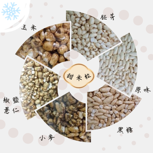 口味有:玉米、胚芽、原味、黑糖、小麥(照片圖二排序由左至右)