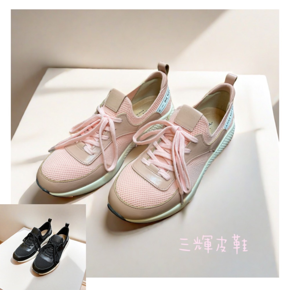 台灣製Miss babala真皮 牛皮彈性飛織 免綁帶超輕量 寬楦 氣墊休閒運動鞋 黑/粉35~40現貨加預購MIT