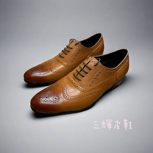 台灣製全真皮 牛皮英倫布洛克牛津雕花尼龍木跟底 尖頭德比綁帶男皮鞋 咖啡渲染現貨MIT