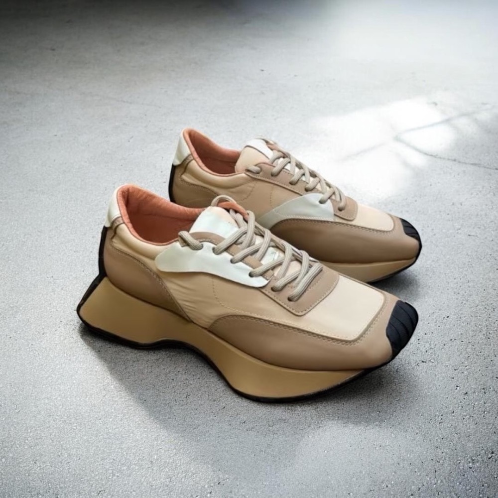 日本製bis-vital全真皮 小牛皮奶油咖厚底小蠻腰華夫阿甘鞋
