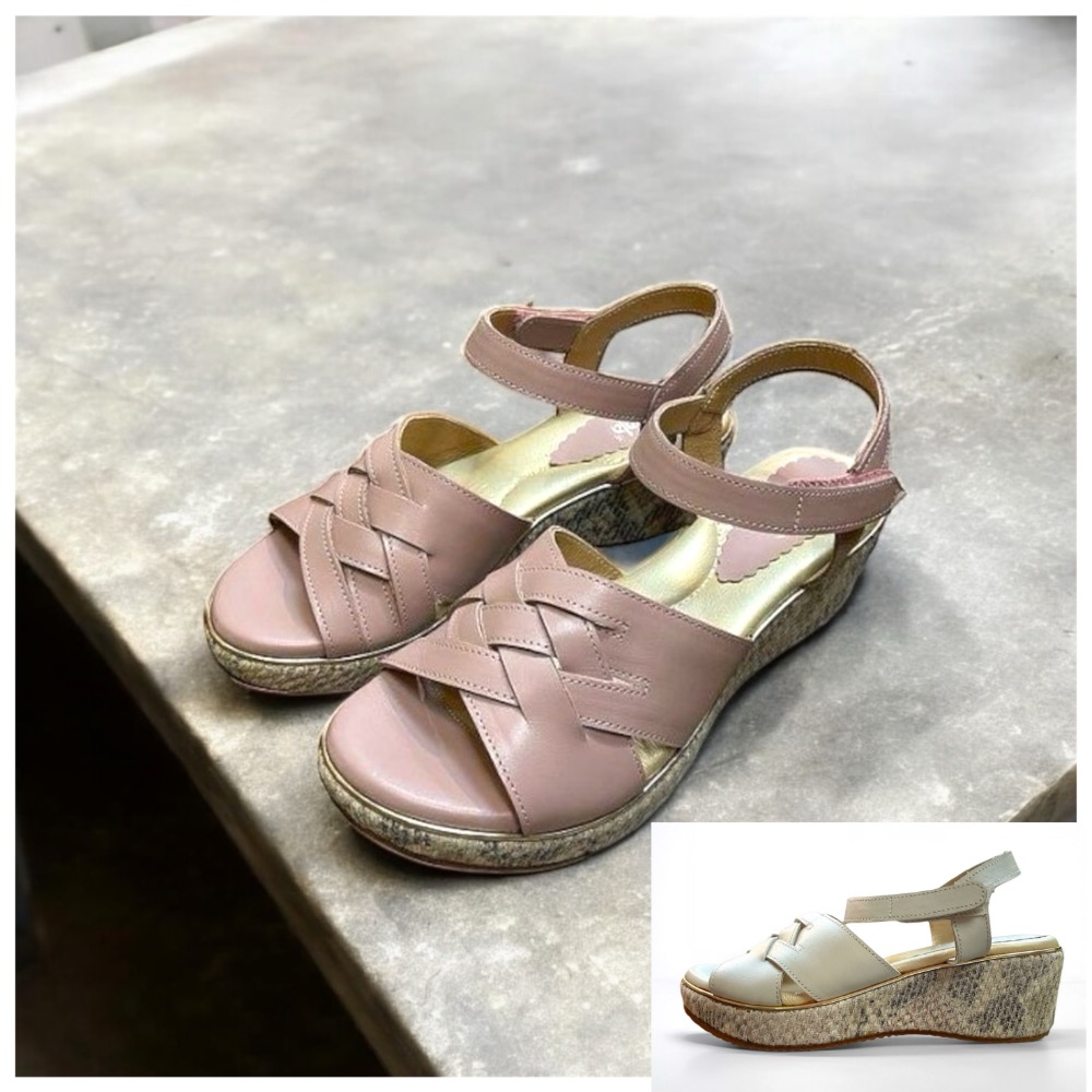 Miss babala 台灣製全真皮 牛皮超輕量足弓支撐氣質編織魔鬼氈厚底楔型跟涼鞋 MIT