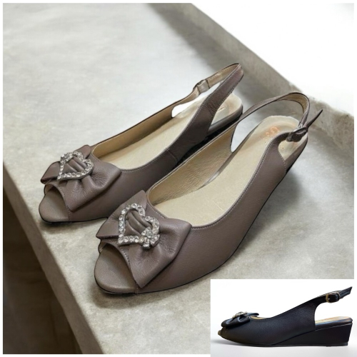 台灣製全真皮 小羊皮愛心水鑽魚口尖頭後空低跟鞋 MIT手工鞋