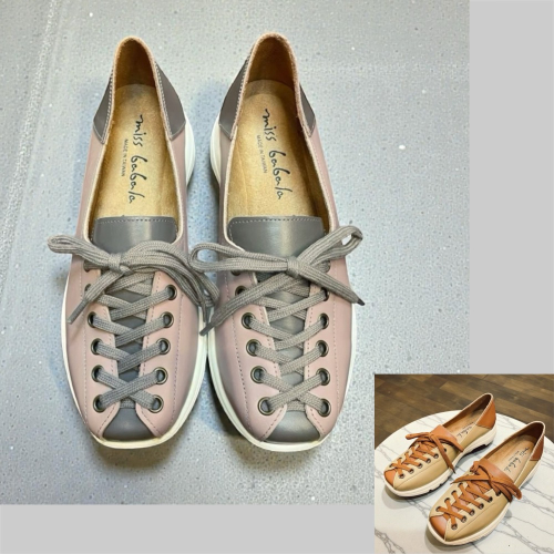 台灣製miss babala真皮羊皮免綁帶輕量皮衣交叉鞋帶造型懶人休閒鞋輕便鞋
