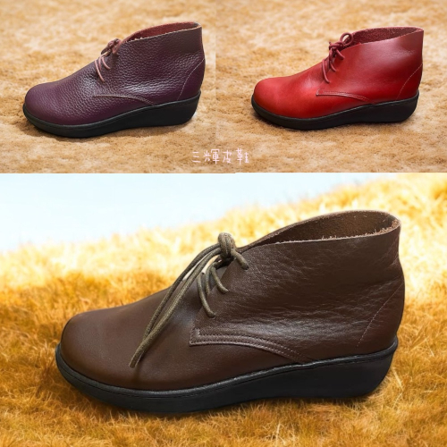 台灣製全真皮 小牛皮厚底短靴 植鞣染平底踝靴,Miss Babala三孔高幫鞋
