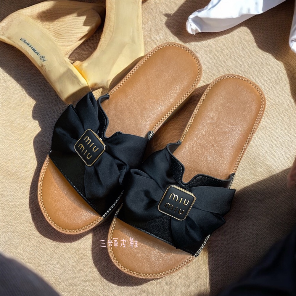 牛皮蝴蝶結Q彈軟底平底拖鞋