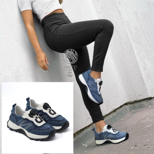 台灣設計師作品 fnace真皮免綁帶旋轉鈕扣慢卡鞋 牛皮+牛仔 防磨防滑大底 休閒時尚穿搭運動單車健身運動懶人鞋 現貨
