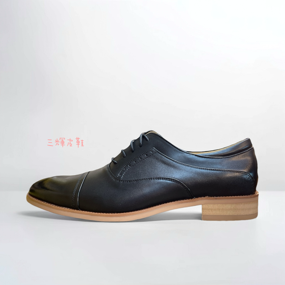 台灣製手工全真皮 牛皮英倫一字橫紋素面木頭大底牛津鞋