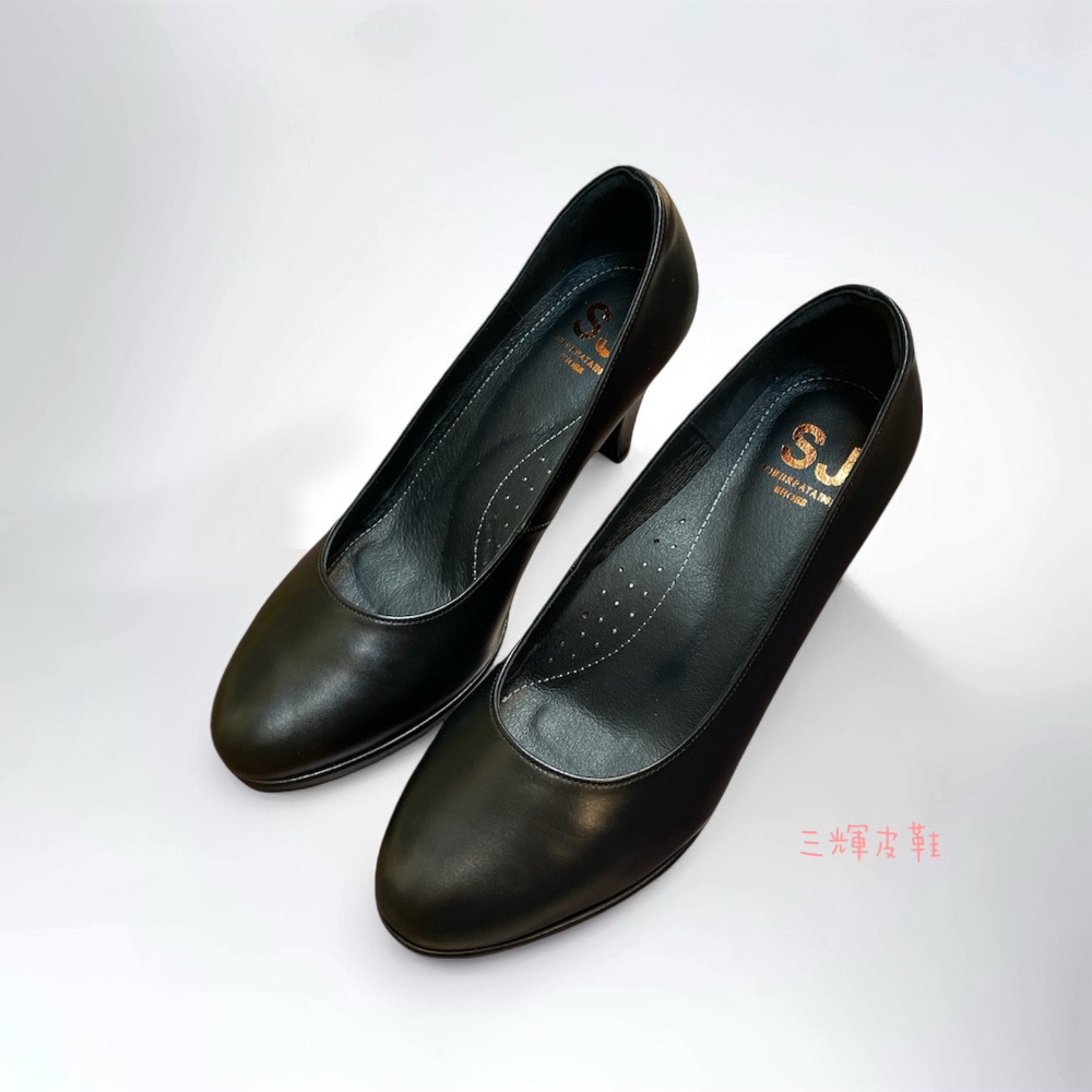 台灣製全真皮 皮包跟 羊皮素面圓頭基本款防水台細跟高跟鞋上班鞋 老師傅手工鞋 現貨
