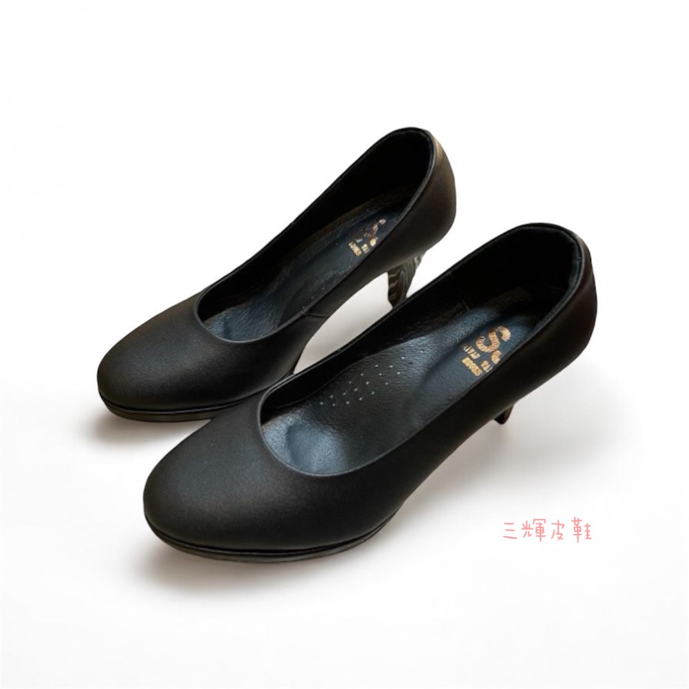 台灣製全真皮 羊皮素面圓頭基本款防水台細跟高跟鞋 寬楦拇指外翻適用 現貨