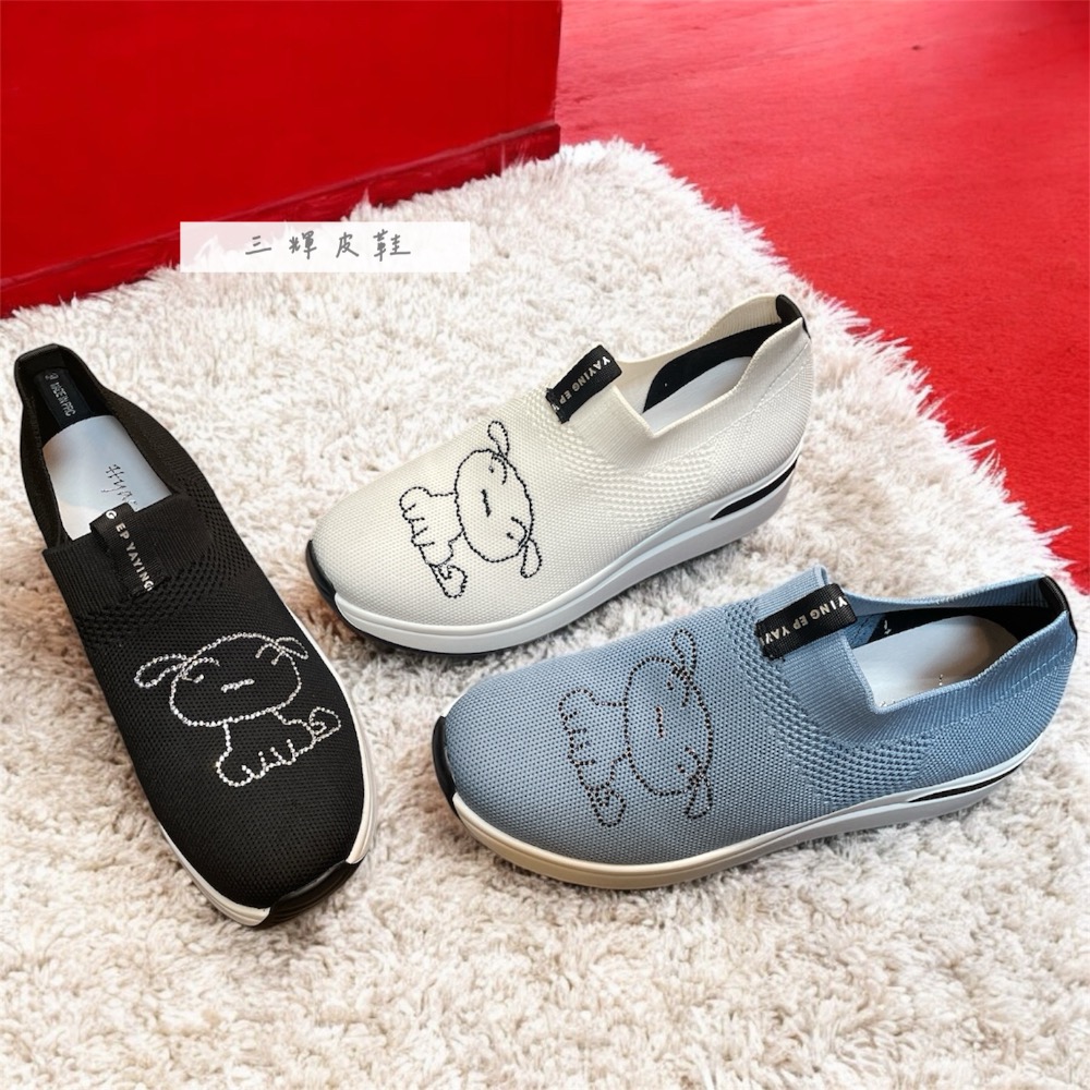 蠟筆小新系列 小白狗狗水鑽真皮內增高襪套式休閒鞋 免綁帶超輕量透氣防臭厚底增高鞋