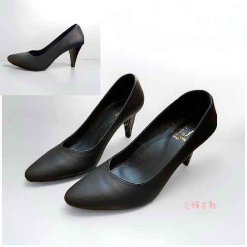台灣製全真皮 羊皮素面V口尖頭基本款高跟鞋 老師傅手工鞋 寬楦拇指外翻扁平足適用 MIT
