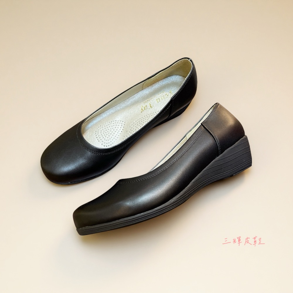 台灣製全真皮 牛皮圓頭素面足弓支撐楔型鞋平底鞋 MIT手工鞋