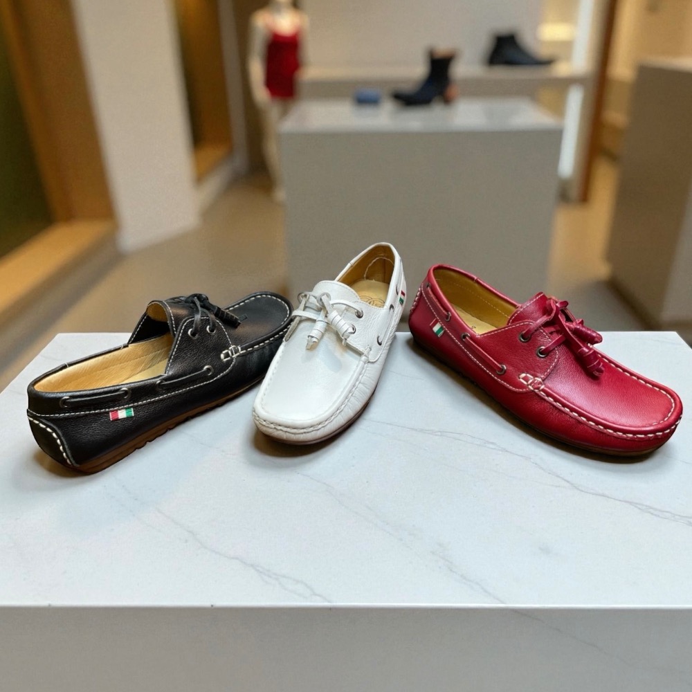 台灣製全真皮 MIT手工鞋 牛皮免綁帶鞋底縫製小方頭鞋帶款女豆豆休閒帆船鞋