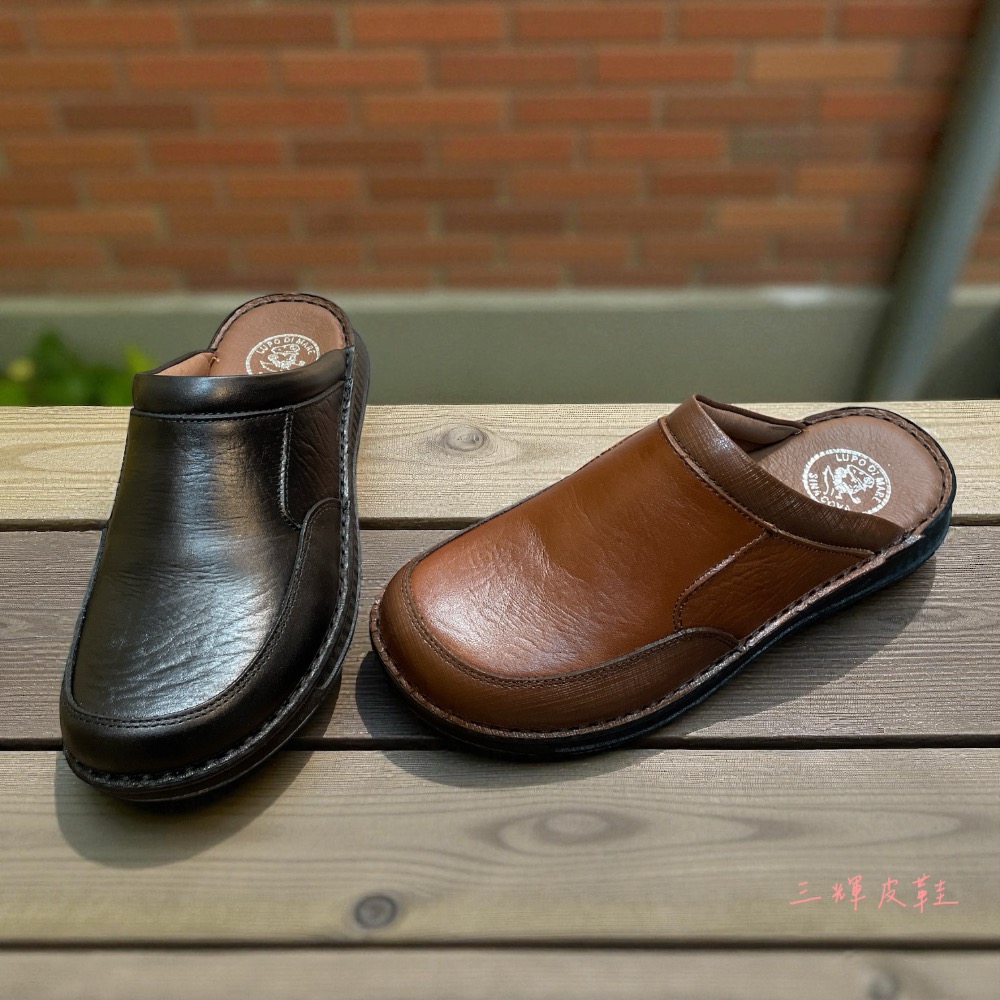 老船長台灣製全真皮 MIT 牛皮寬楦氣墊男包頭拖鞋