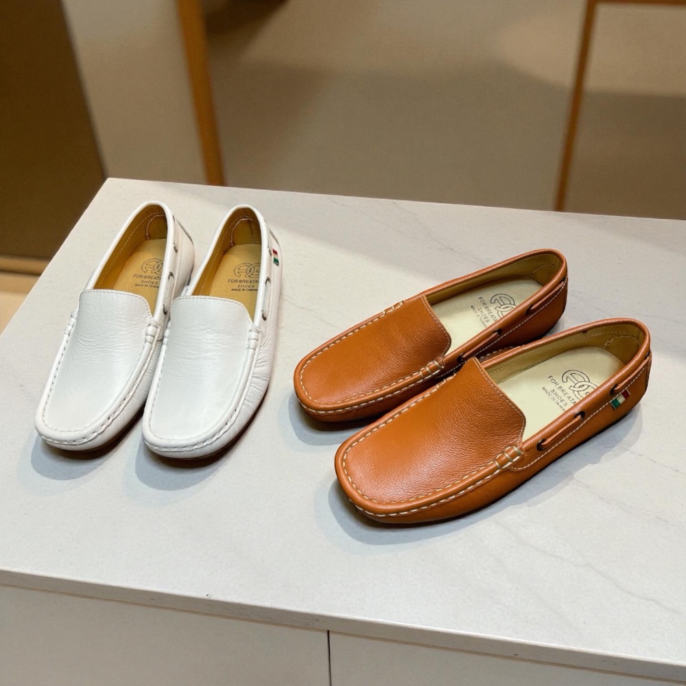 台灣製全真皮 MIT手工鞋 牛皮免綁帶鞋底縫製小方頭素面款女豆豆休閒帆船鞋