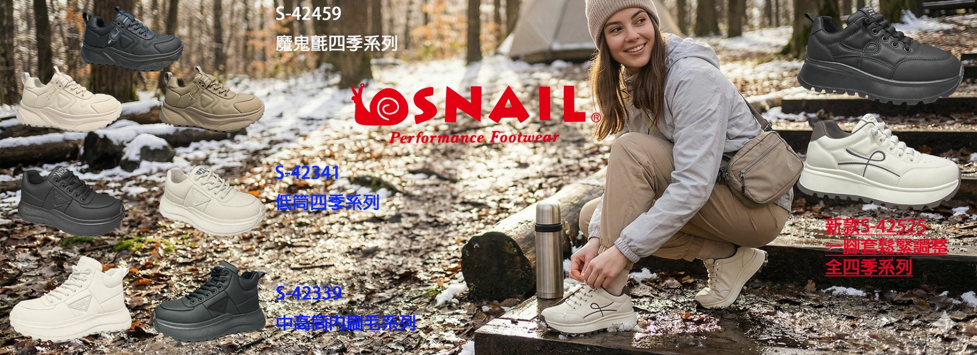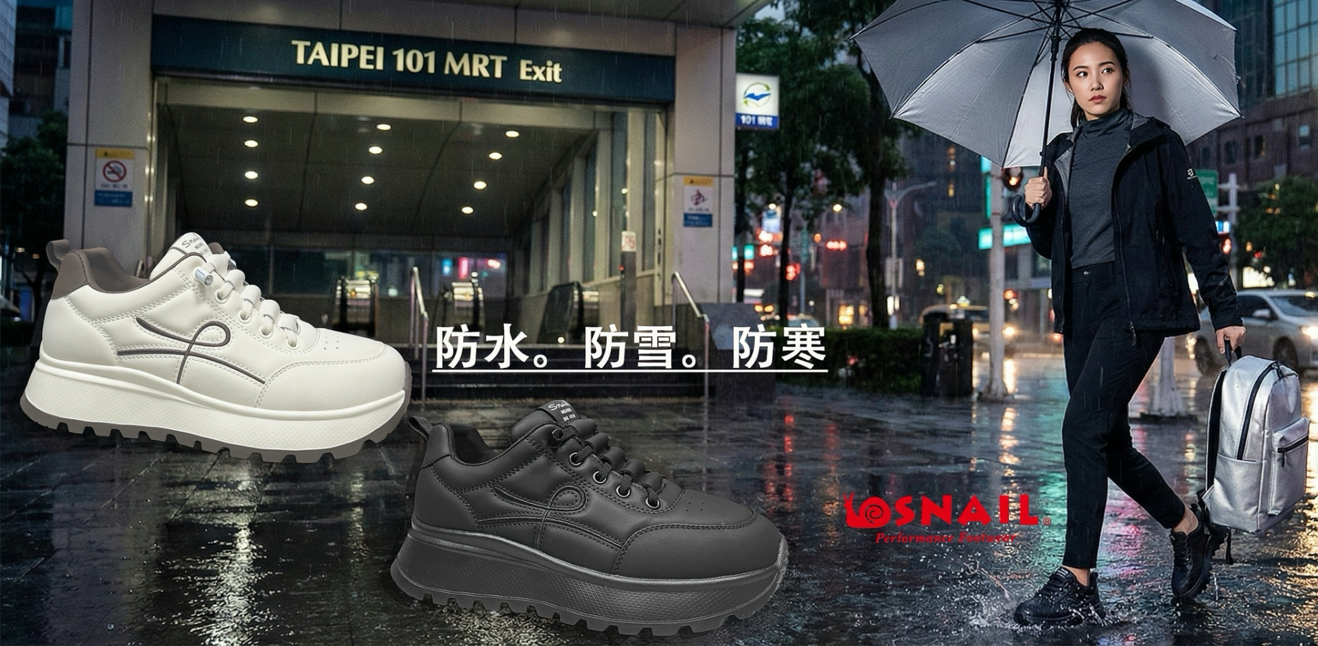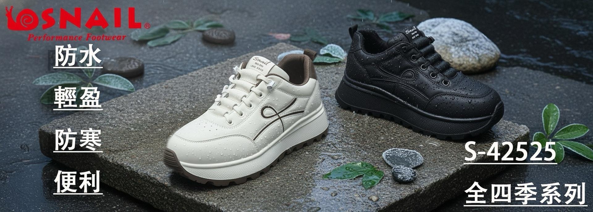❤️SNAIL防水休閒鞋,結合輕盈舒適的鞋底與實用機能。