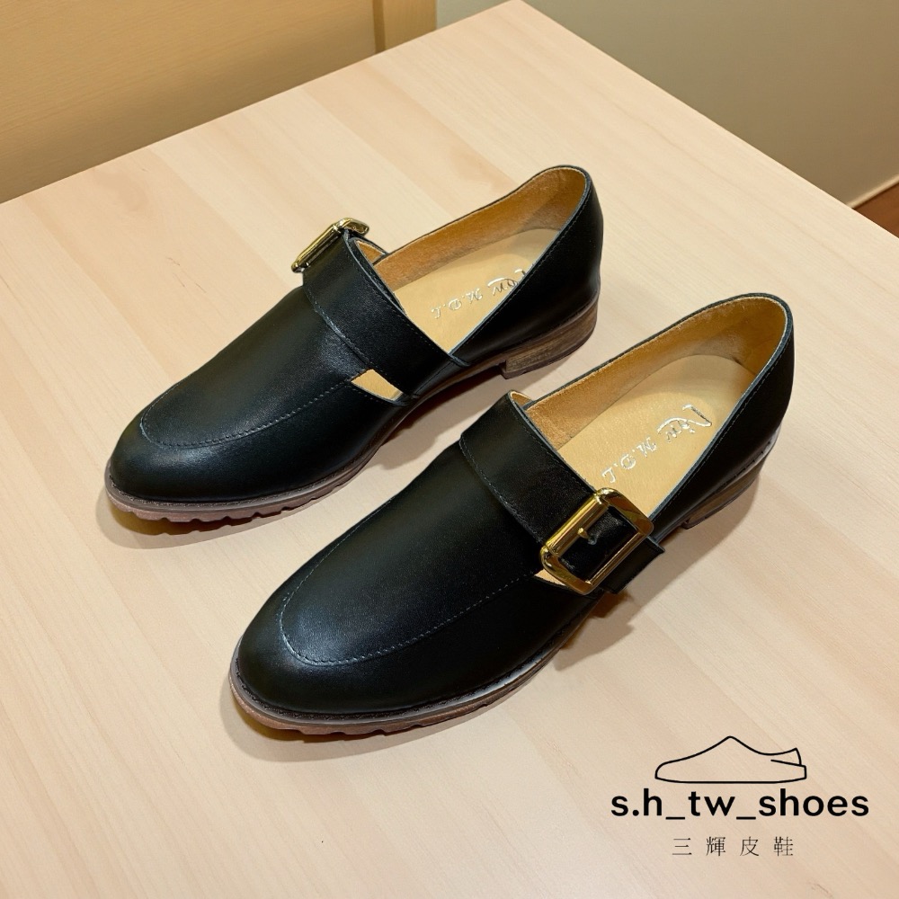 台灣製真皮尖頭寬楦低跟木頭跟樂福鞋孟克鞋 MIT手工鞋