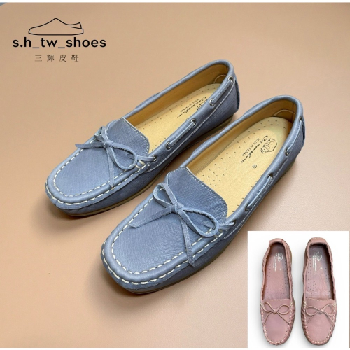 MIT台灣製全真皮水洗牛皮鞋底縫製蝴蝶結軟皮軟底豆豆鞋