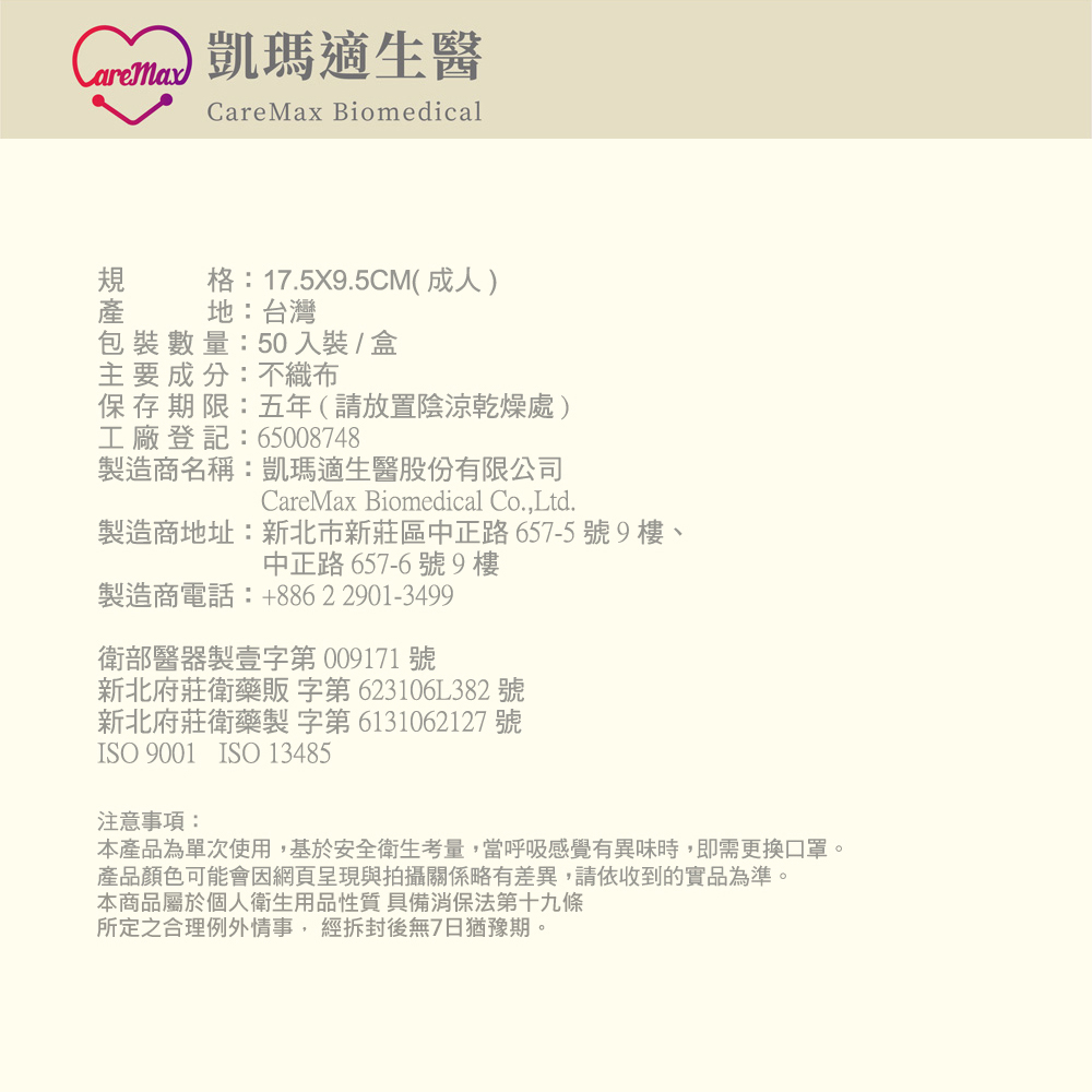 製造商名稱:凱瑪適生醫股份有限公司 CareMax Biomedical Co.,Ltd.