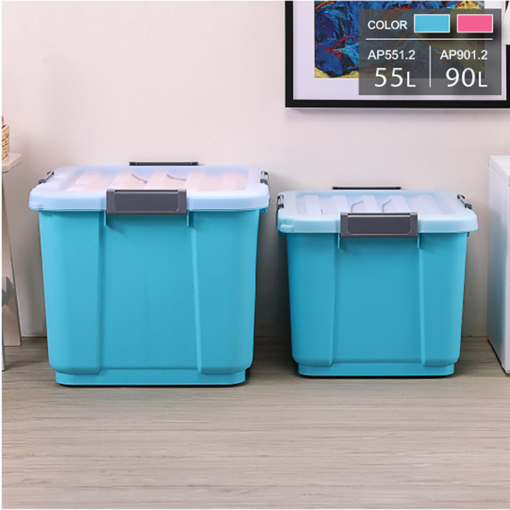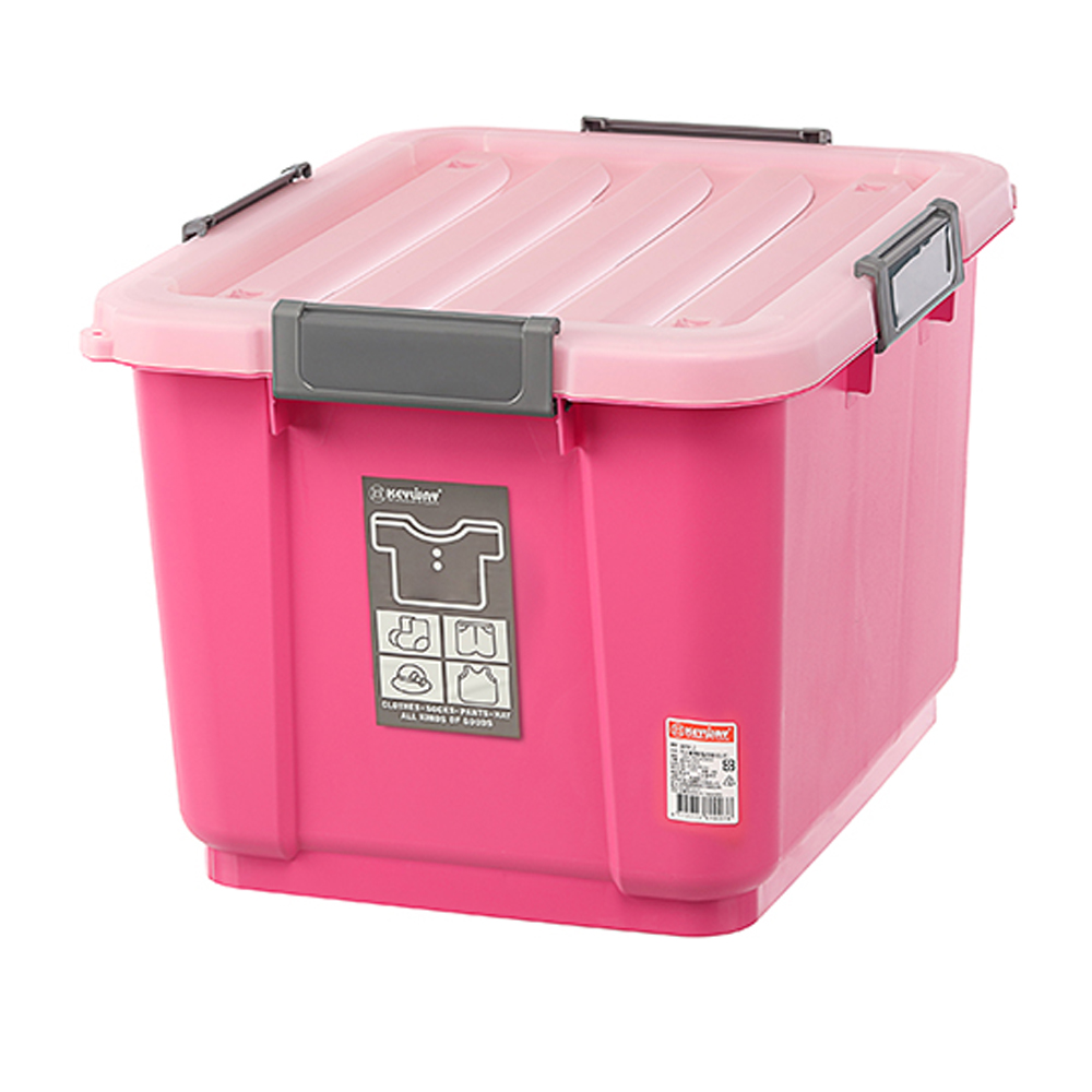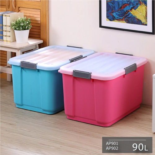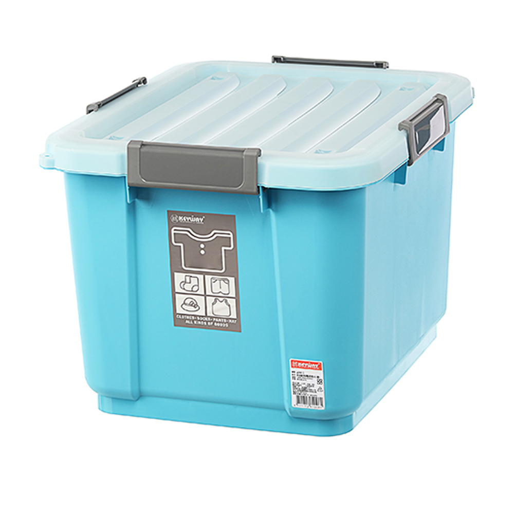 四面扣環設計,闔蓋防塵,兩角洞孔可搭配束帶使用,使箱蓋不易打開;底部滑輪設計,可拆裝變換方向,移動更加便利,可作堆疊,節省空間,箱面作凹槽設計,便於堆疊,有兩種容量,可供挑選。