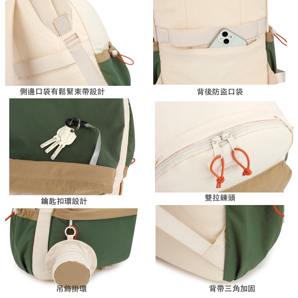 大容量主袋與多個功能小袋(前袋、側袋、內部隔層),讓耳機、相機、行動電源等各種隨身物品都能物歸原位,井然有序。