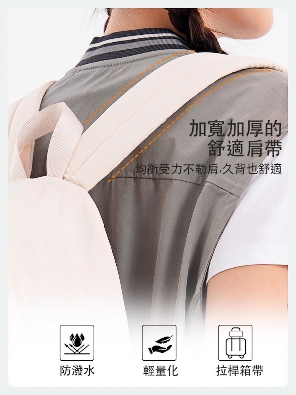 僅 0.6kg!搭配人體工學加寬加厚減壓肩帶,即使裝滿筆電與雜物,久背也依然舒適無負擔。