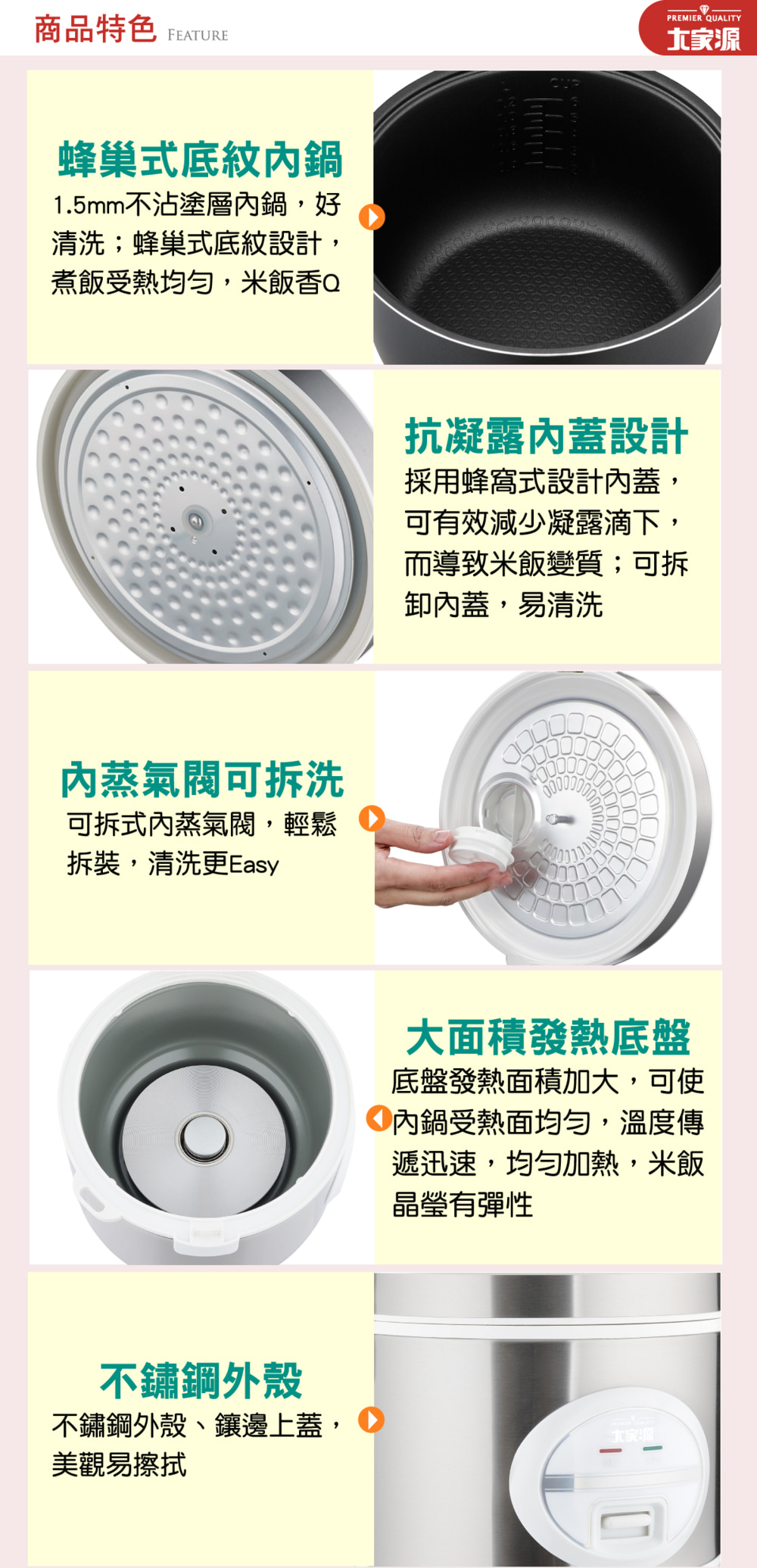 ★防凝露內蓋設計,減少凝露滴下,而導致米飯變質