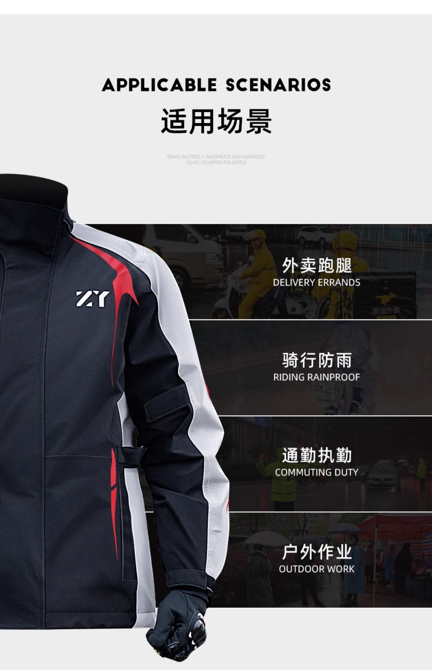 進口原裝|MOTO_R東北騎士|Zheogyu正雨 8966YX”男女成人款”衝鋒分離式騎士雨衣套裝