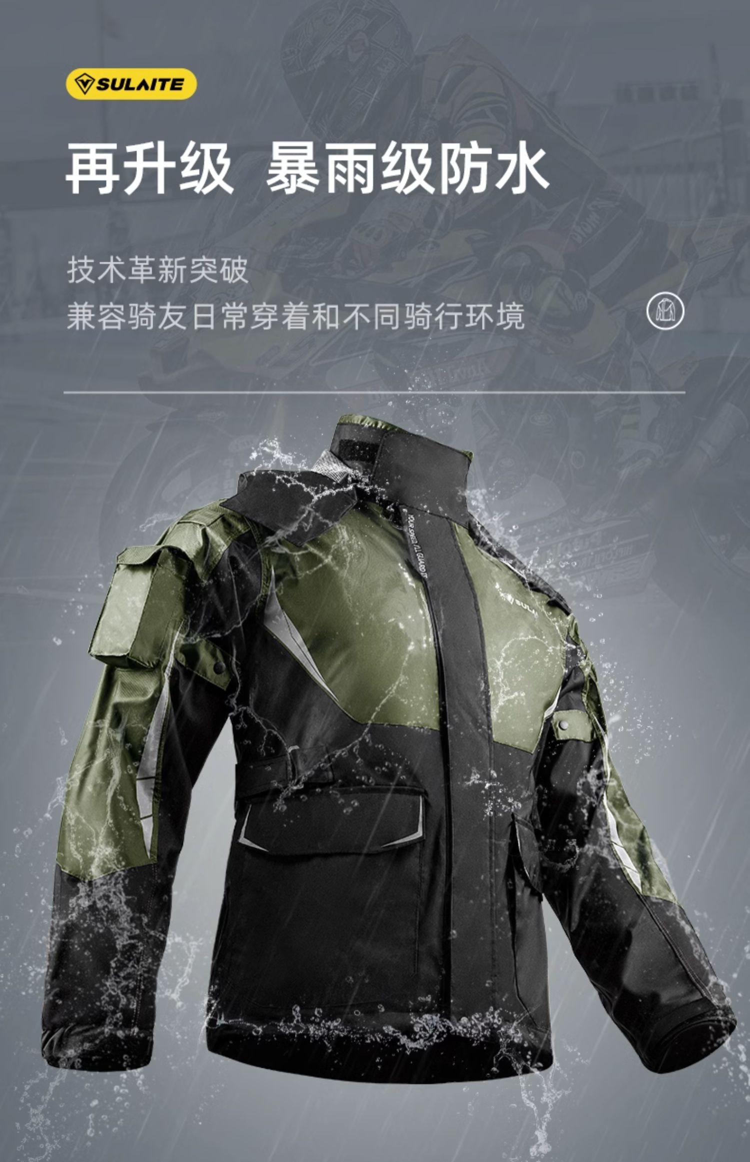 進口原裝|MOTO_R東北騎士|Sulaite速萊特SLT0904“男生成人款”衝鋒分離式騎士雨衣套裝