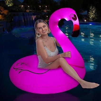 充氣火烈鳥泳池漂浮帶七彩燈光,LED 變色火烈鳥游泳巨型管環,42 英寸大型泳池海灘漂浮漂浮有趣的成人夏季泳池漂浮