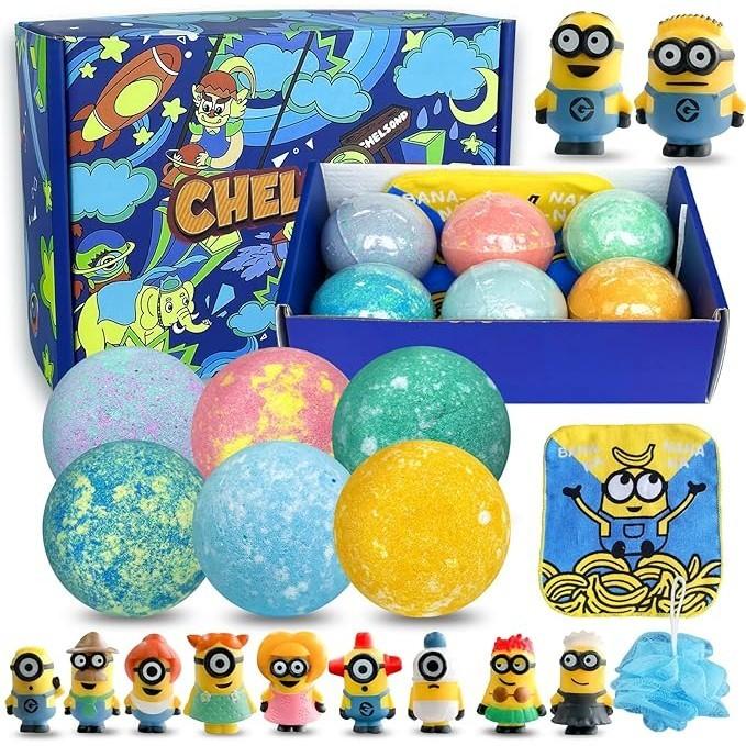 [驚喜沐浴炸彈] 美麗的禮物盒包含 Mi-nions 主題浴巾、浴巾、6 個 XXL 手工製作的兒童沐浴炸彈,有 6 種不同的超讚玩具和香味,就像盲盒一樣。 創造一個泡泡浴,裡面有很多五顏六色的泡泡和舒緩的果味,孩子們將成為一名Mi-nions-教練,期待世界兒童玩具來自融化的爪牙球沐浴炸彈。孩子們每次洗澡時都可以獲得 6 種不同的驚喜!