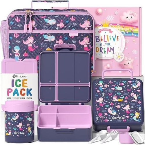 11 件兒童學校午餐禮物盒組:Fimibuke 多合一兒童保溫飯盒超值組是一個為孩子們學校午餐打包和攜帶的一站式解決方案,包括保溫午餐袋、帶餐具的便當午餐盒、湯杯、12 盎司(約 340.2 毫升)不銹鋼食品罐、冰袋和精美禮品盒。 這是送給 3-12 歲的女學生到日托、托兒所、學齡前、幼兒園、小學、返校或夏令營的理想禮物。