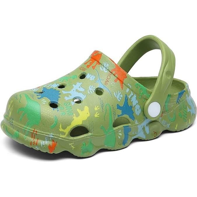 可愛又獨特:純色覆蓋著各種恐龍圖案,讓這些小孩的木屐看起來與眾不同又可愛。可當拖鞋使用,也可以用作涼鞋。