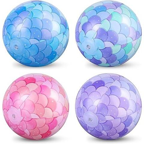 4 件美人魚鱗片沙灘球,共有 4 種鮮豔色彩,印有美麗的美人魚鱗片圖案,精緻精緻精緻,為您帶來愉快的視覺享受,並為您的美人魚游泳派對和美人魚生日派對增添很多樂趣。