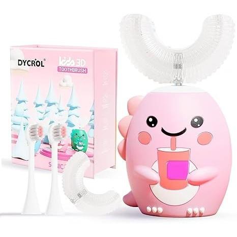 U 形電動牙刷,附 4 個刷頭、聲波牙刷兒童有 5 種模式,卡通恐龍360 度清潔(6-12歲)