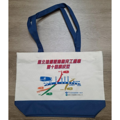 全新 台北捷運板南線完工通車 台北市政府捷運工程局 高級 拉鍊帆布購物袋 尺寸 44 X 31 X12.5 CM