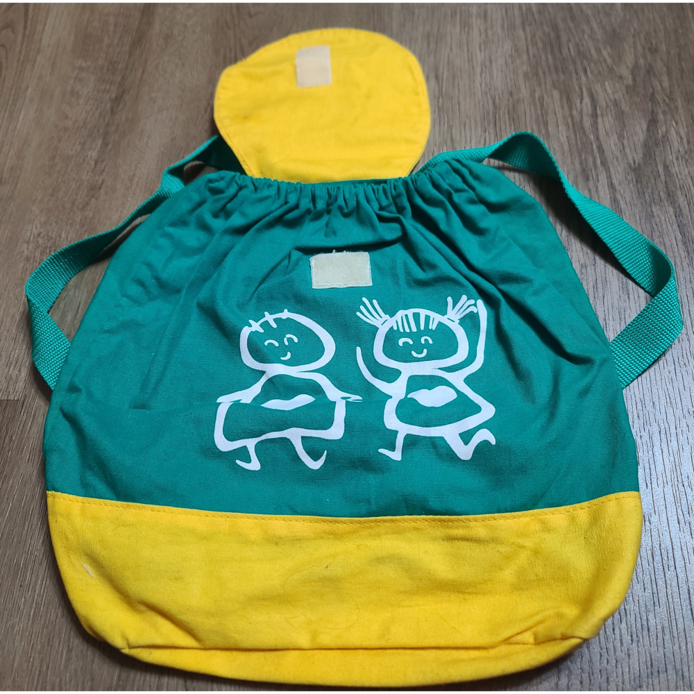 全新/久放 小朋友可愛背包 黃綠兩色 青蛙吊飾 尺寸33X33X10 CM