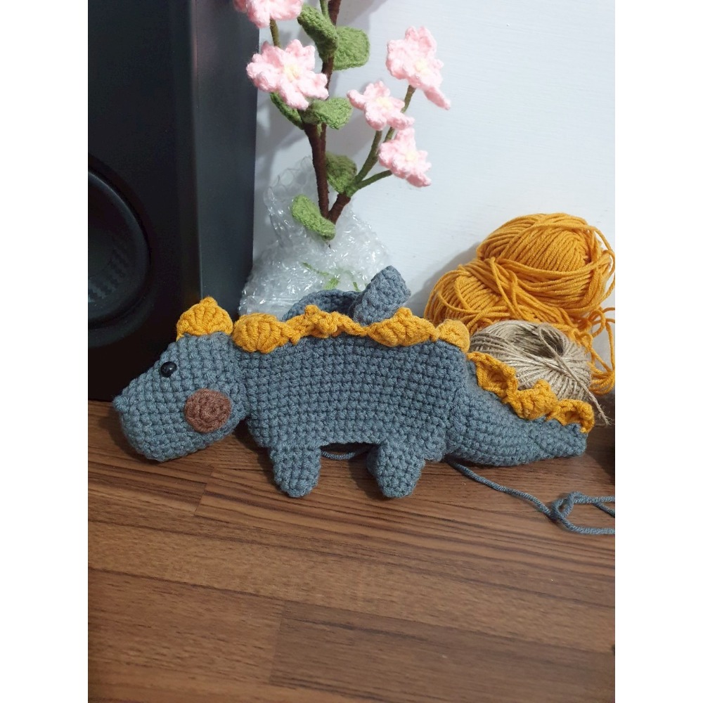 立體恐龍杯袋(帶)恐龍吊飾 手工毛線鈎織